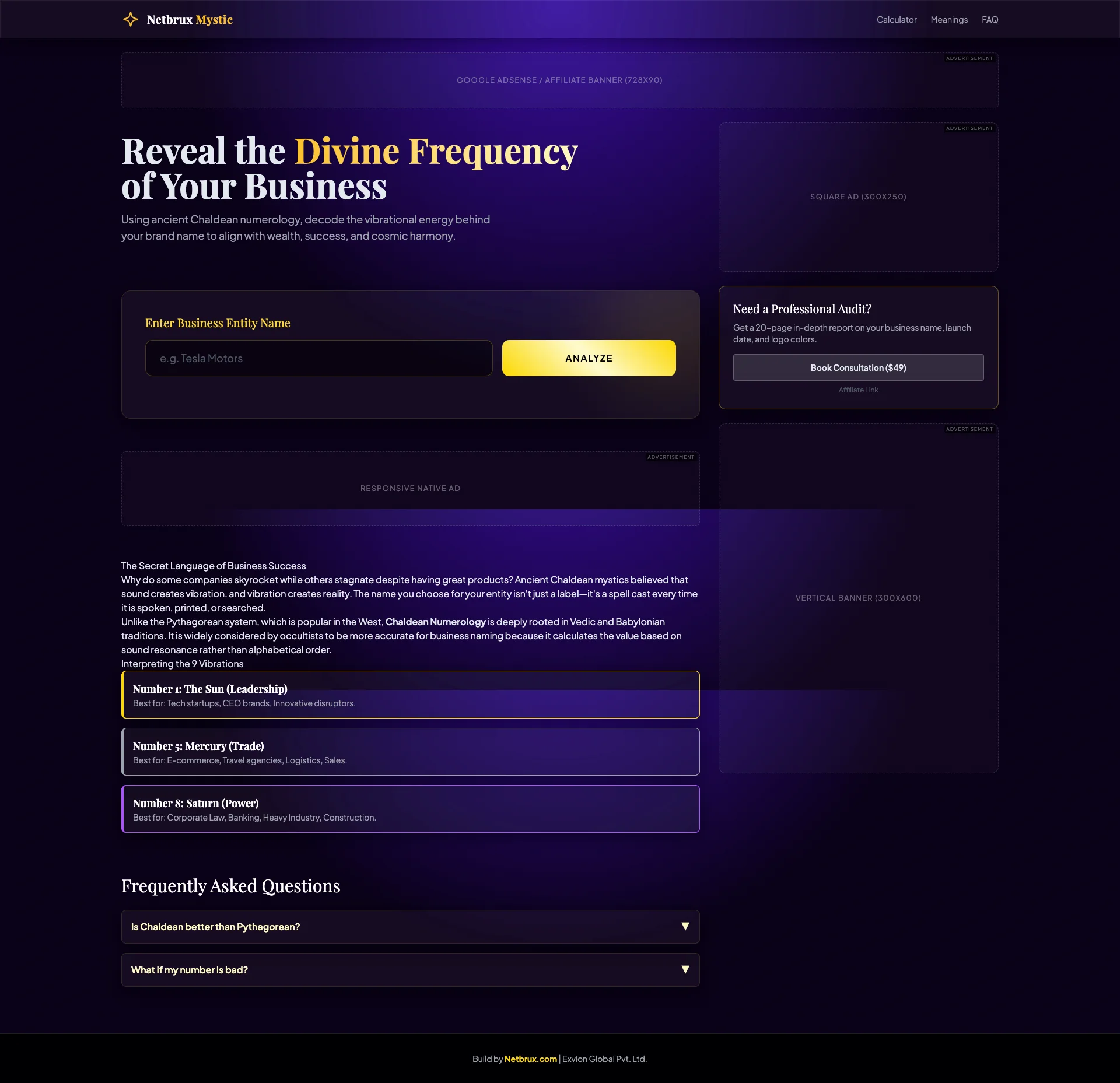 Enter any business name and generate its Chaldean vibration number instantly. -