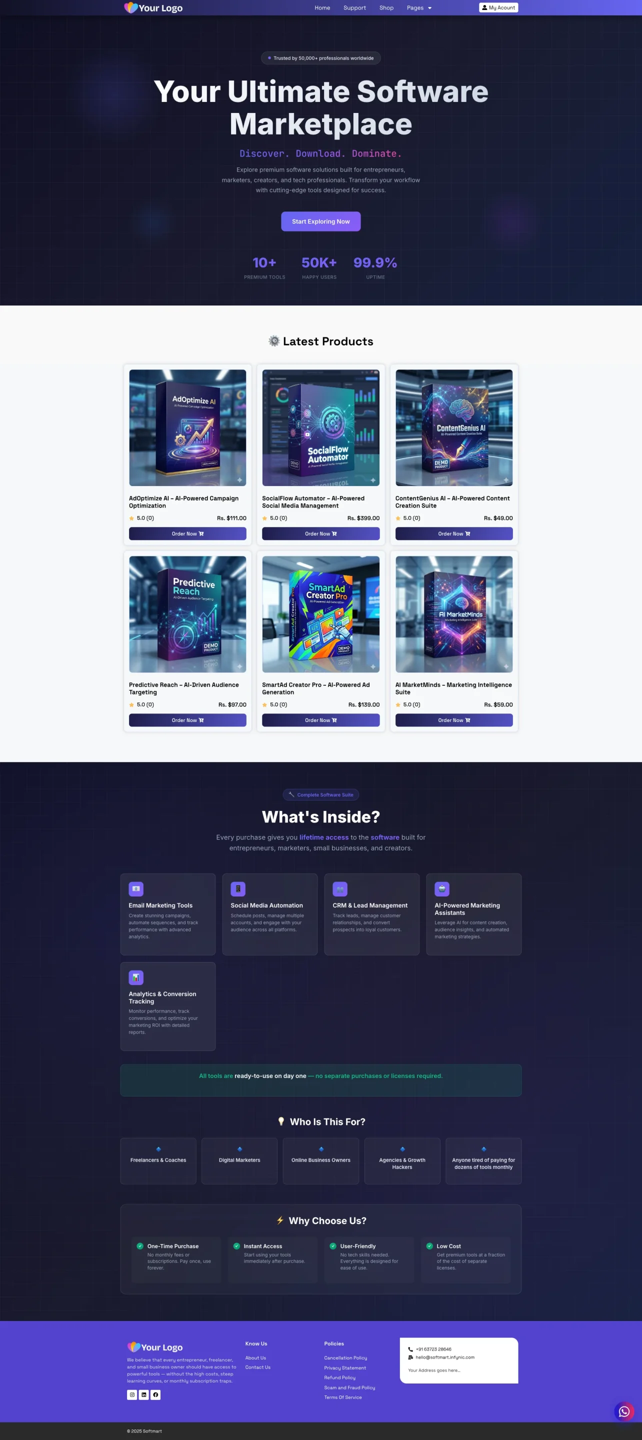 Unlike generic WooCommerce themes, SoftMart is specifically designed for software selling: